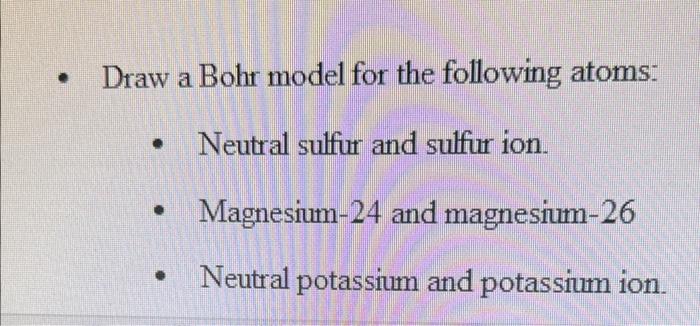 Solved Draw A Bohr Model For The Following Atoms Neutral Chegg Com